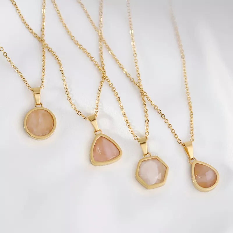 Rose Quartz Hexagon Pendant Necklace 18K Gold Plated